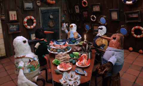 Op een zandplaat in de Waddenzee bevindt zich een bijzondere plek. Een animatie over een wegrestaurant voor vogels, dat draait als voedselketen.